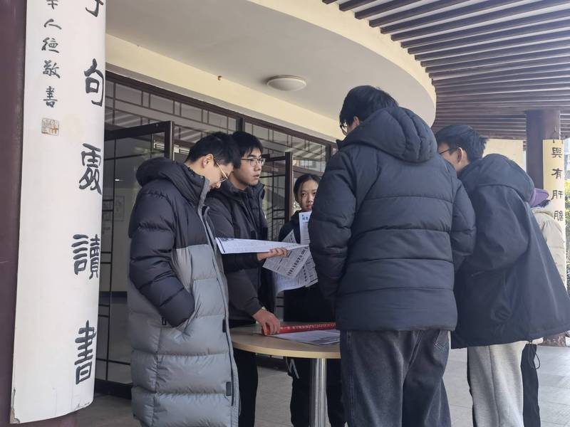 2024年1月26日,“传河海之声,承一中之情”返校宣讲实践团来到江苏省苏州第一中学校,开展线下宣传活动。三位成员提前规划,准备好宣传资料,在有限的时间内,向同学们介绍学校基本信息、优势专业、招生计划。