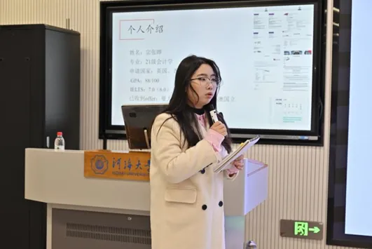 2021级张宗晔同学结合自己大学四年经历:大一以提升学业,专注竞赛为主;大二对留学方向进行初步规化,提高自身语言能力;大三选择学校并准备相关资料;大四提交申请并按需要进行笔试与面试的准备。她建议同学们在保证成绩的同时,尽早开展学业与职业规划,提高自身能力,完成留学目标。
